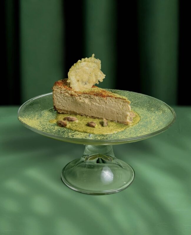 De postre compartimos una tarta de queso con roquefort, sorprendente y riquísima. Una mezcla dulce-salada que te deja con ganas de repetir.